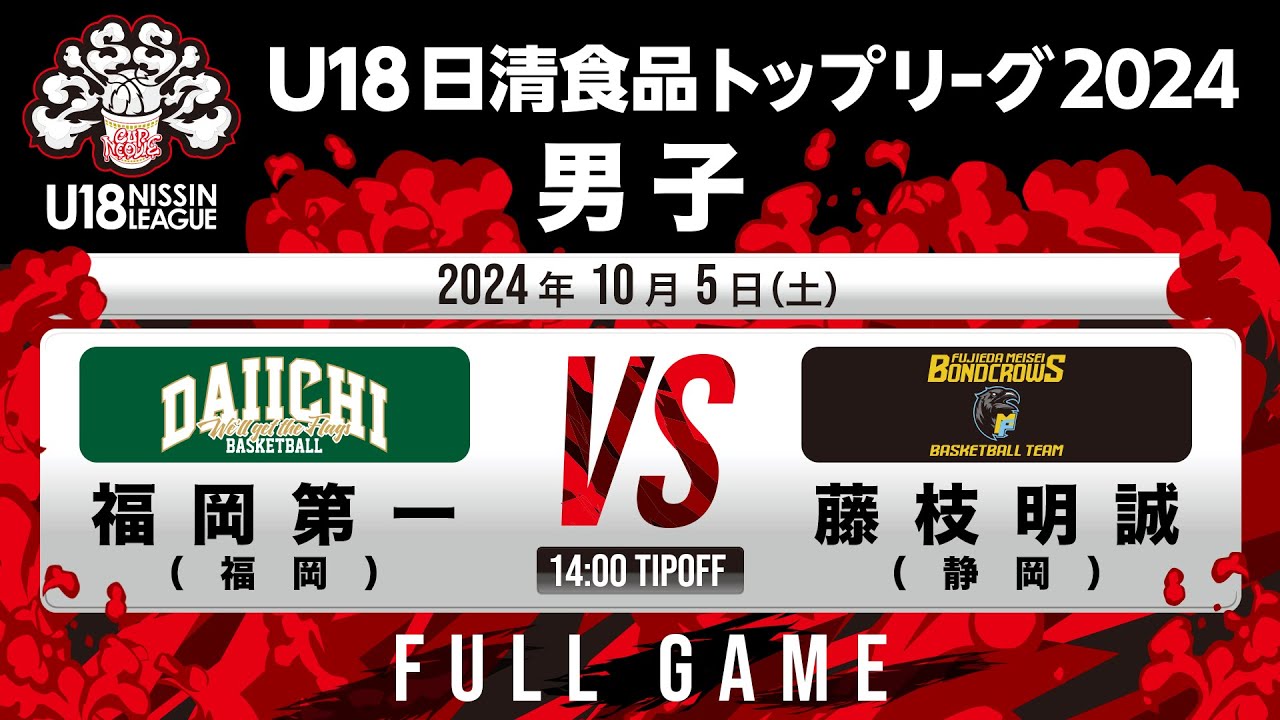福岡第一 vs 藤枝明誠|2024.10.5|Full Game|U18日清食品トップリーグ2024(男子)|飯塚市総合体育館【バスケ】