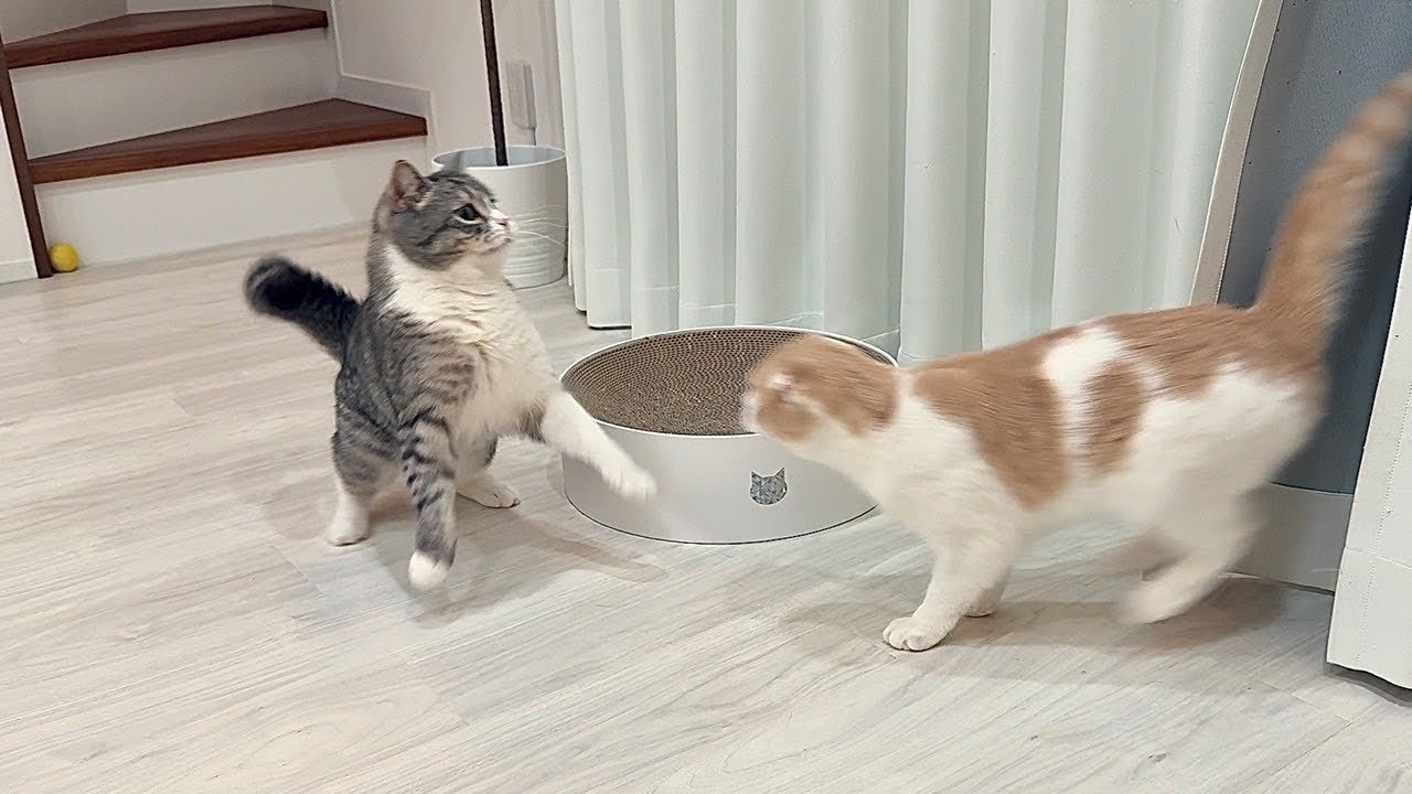 カーテンから飛び出して兄猫を驚かせようとしたらびっくりしすぎてこうなっちゃいましたwww【猫】