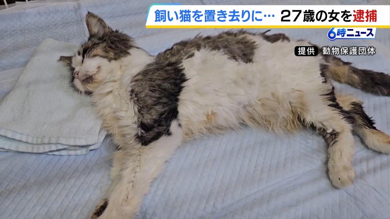 飼い猫の世話を放棄し置き去りにしたとして、27歳の女が逮捕されました。