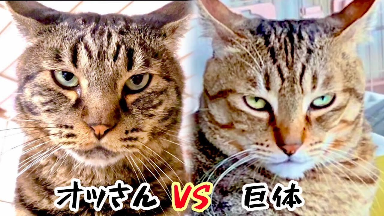 巨体猫の「まくら」とおっさん猫の「どらお」、どらおの方が弱いかと思いきや・・、どらおの逆襲がとんでもない必殺技でした😱‼︎