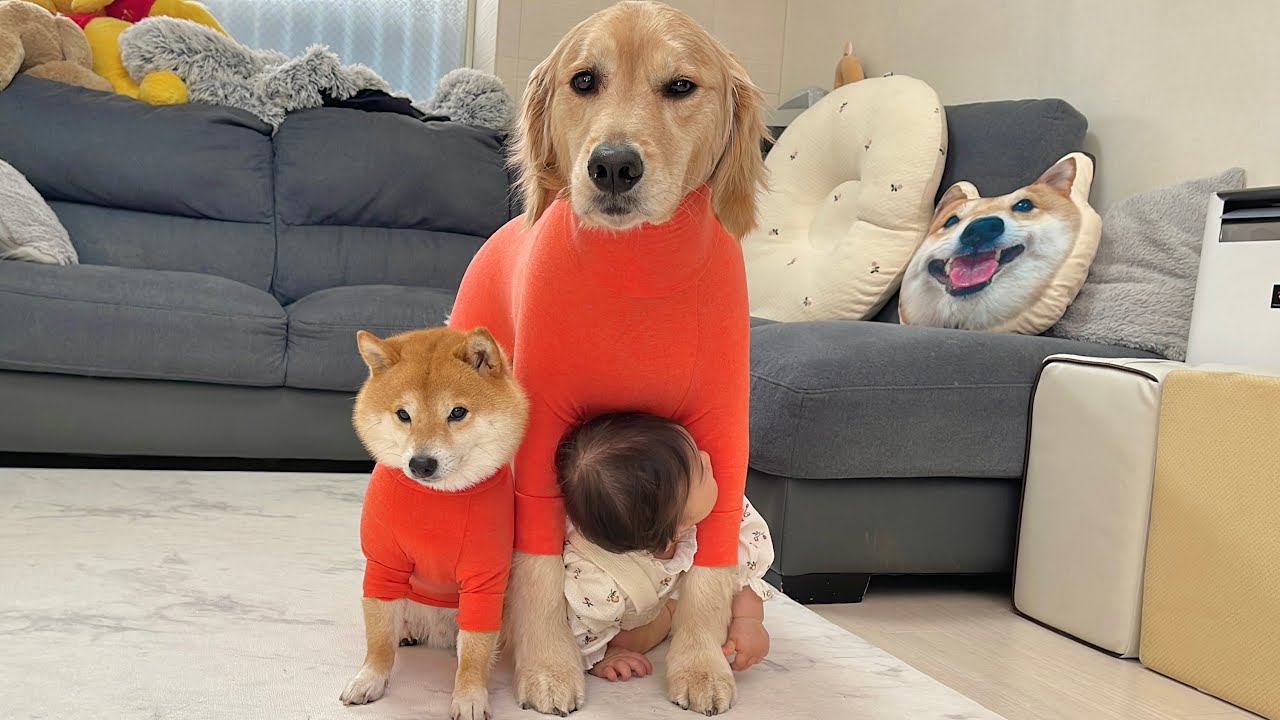 突拍子もない行動をしてくる0歳児にも冷静さを見せるゴールデンレトリバー【犬】
