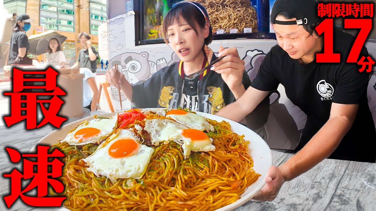 - タイトル: 【大食い】目指せ最速‼︎制限時間17分で爆盛り焼きそばのチャレンジメニューに挑んだ結果【海老原まよい】