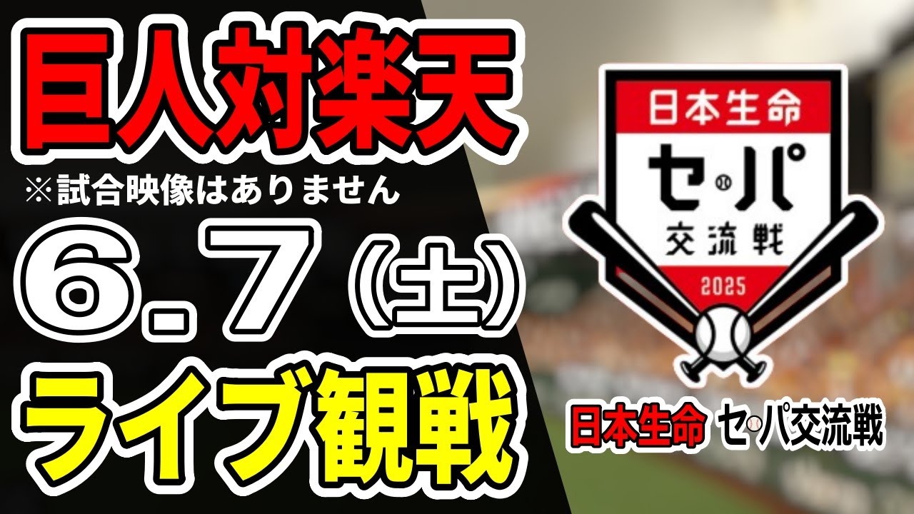 - タイトル: 【巨人ライブ】6/7 巨人 対 楽天イーグルスの交流戦をみんなで応援するライブ!巨人戦を生配信中!!#読売ジャイアンツ #巨人交流戦 #楽天ライブ