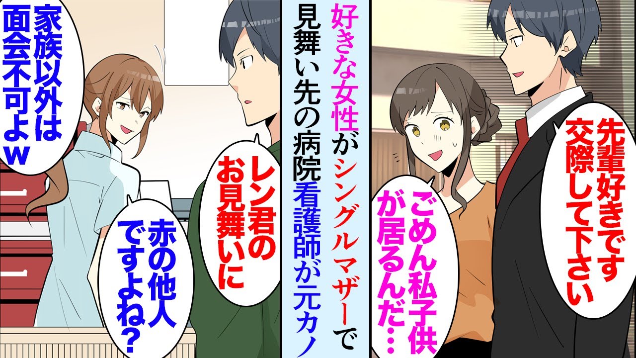 • タイトル: 【漫画】好きになり告白した人がシングルマザーだった「ごめん、私子供居るんだ…」それでも気持ちは変わらず、子供も一緒に3人で遊ぶことが増え→ある日病院で看護師になった元カノに遭遇し…【マンガ動画】