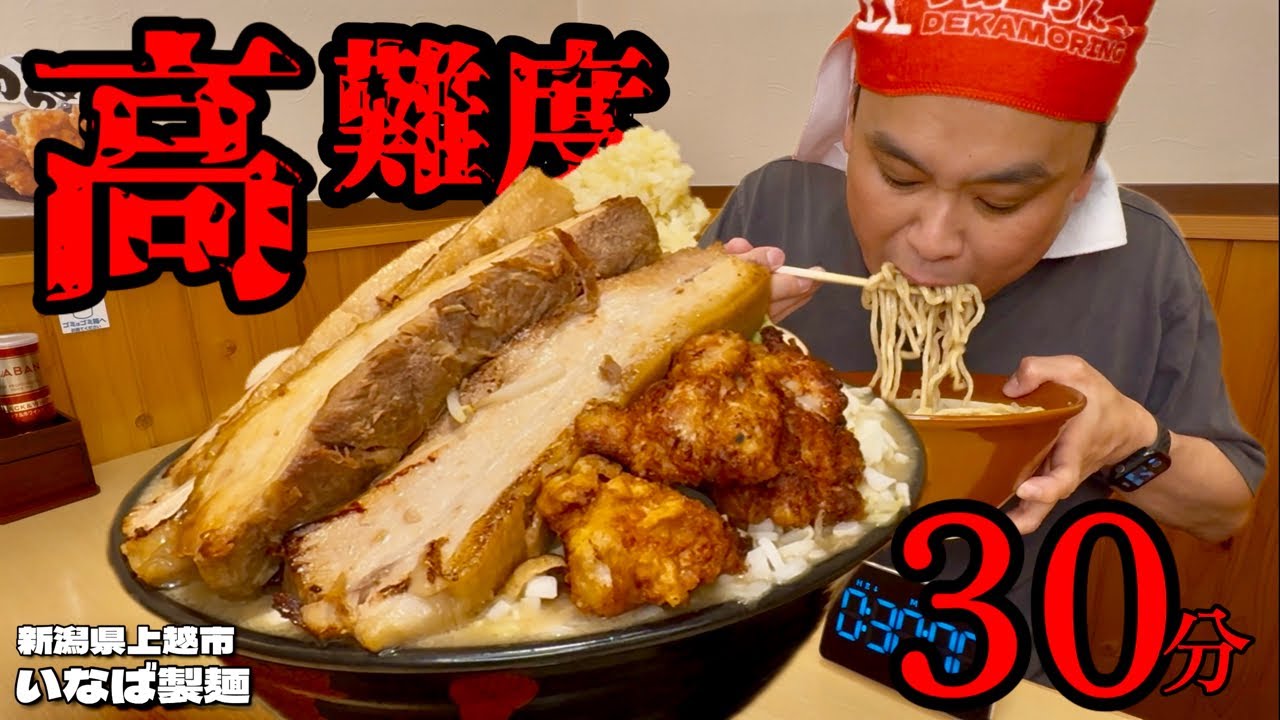 - タイトル: 【大食い】制限時間30分!難易度の高い肉満載の二郎系に挑戦した結果!!〜いなば製麺さん〜【大胃王】【新潟県】