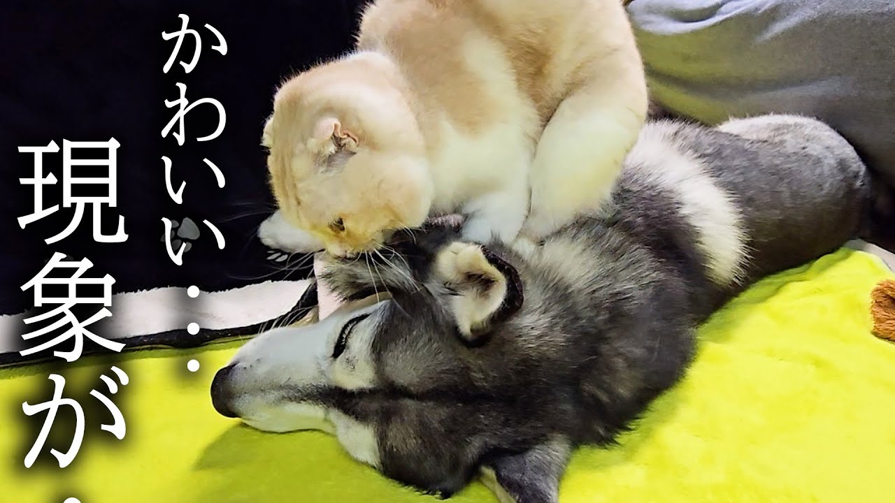 - タイトル: 夜中に猫が寝ぼけて朝だと思ってハスキー犬を起こした結果…