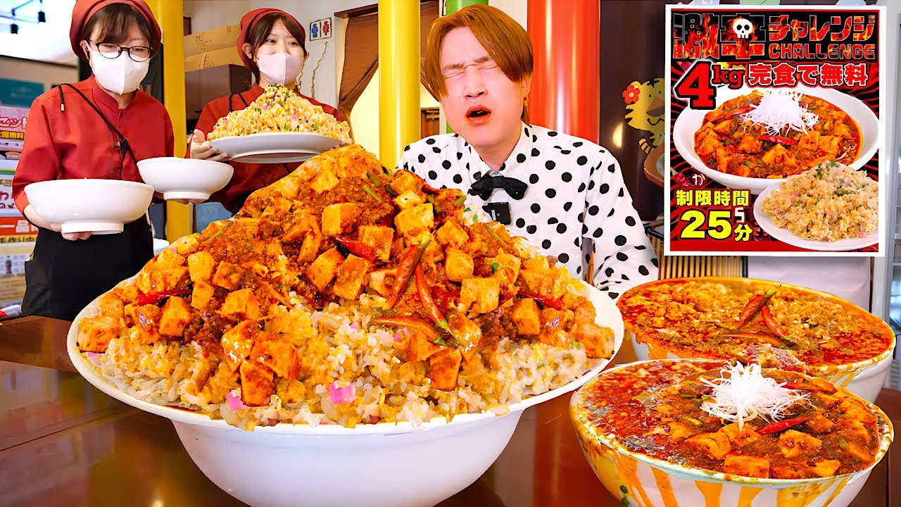 - タイトル: 【大食い】次の日、覚悟の地獄激辛…。激辛麻婆豆腐炒飯4kgを制限時間25分で完食すれば無料だと⁉️【大胃王】【北海道 函館】