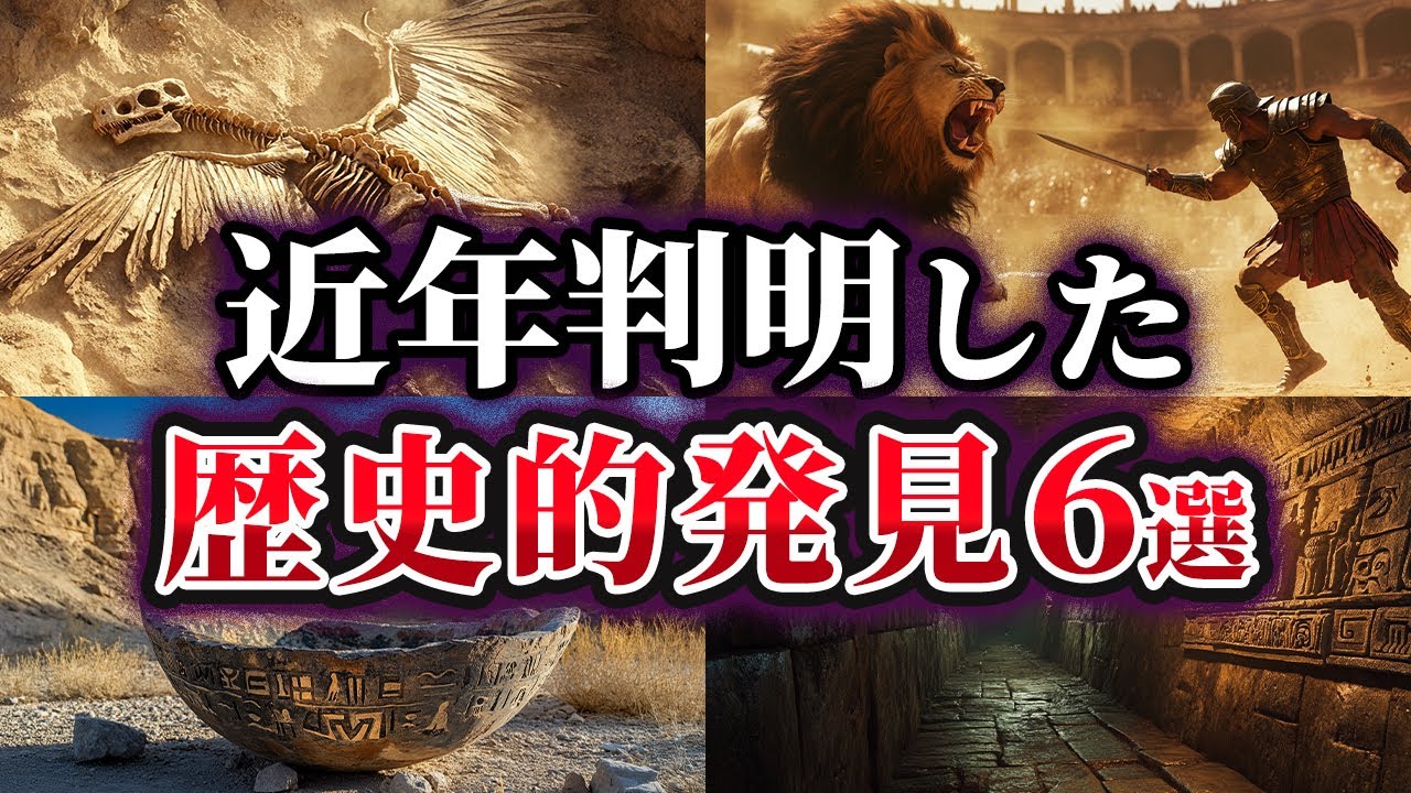 この動画では、最近明らかになった歴史的発見を6つ紹介し、ミッシングリンクがどのように埋められたのかを解説します。まずは、恐竜と鳥の進化のつながりを示す「始祖鳥」の飛行の秘密、続いてインカ帝国の伝説の地下トンネルの発見、さらに古代ローマのグラディエーターがライオンと戦った証拠として見つかった遺骨、3500年前のアルファベットの起源に関する発見、アインシュタインのタイルと呼ばれる非周期的タイルの数学的発見、最後に1300年前のスキー板が気候変動で氷河から現れ、過去の人々の生活と地球温暖化の未来を考えさせられる衝撃の発見をご紹介します。