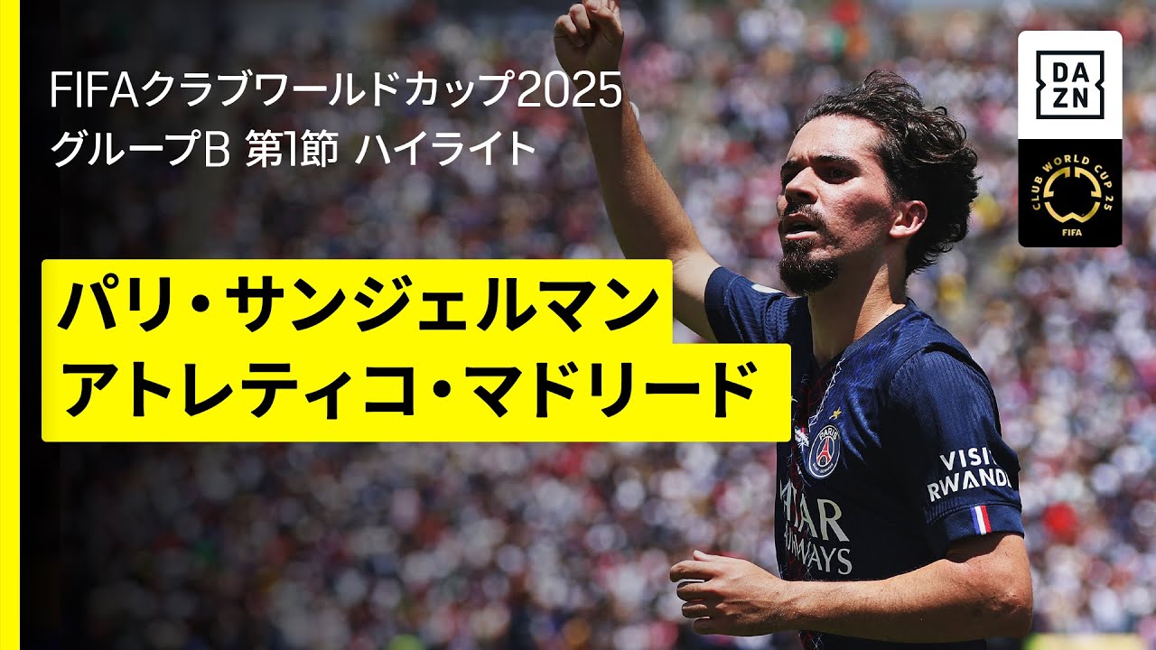 - タイトル: 【PSG×アトレティコ|ハイライト】“欧州王者”PSGが4発快勝で白星発進!アトレティコとの強豪対決を制す|DAZNで全63試合無料ライブ配信|FIFAクラブワールドカップ グループB第1節