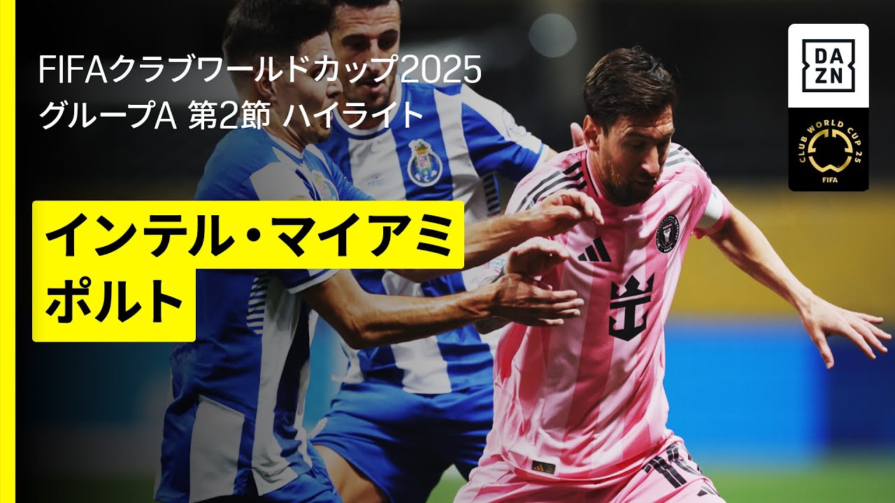 - タイトル: 【インテル・マイアミ×ポルト|ハイライト】 ”神の子”メッシの衝撃FKが決勝点に |DAZNで全63試合無料ライブ配信|FIFAクラブワールドカップ グループA第2節