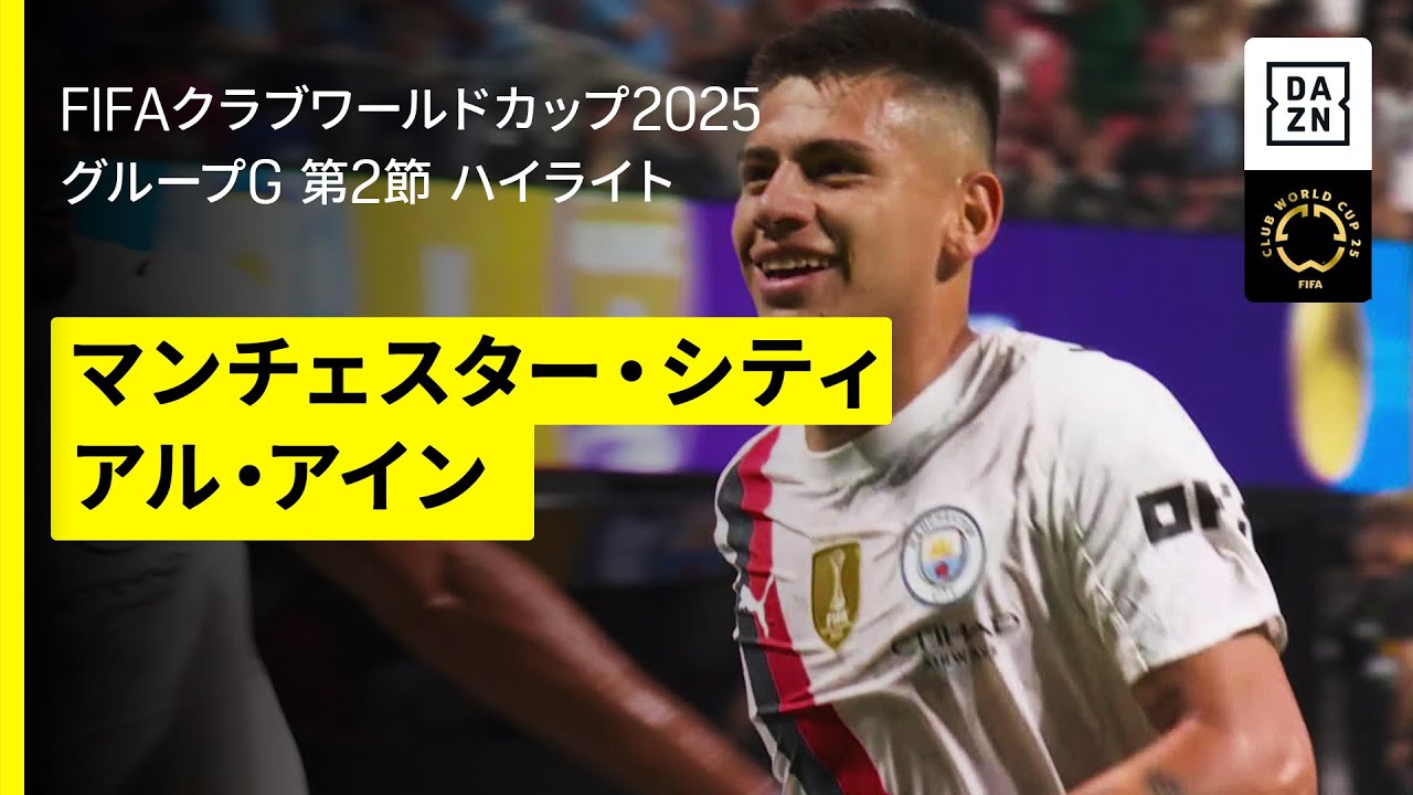 - タイトル: 【マンチェスター・シティ×アル・アイン|ハイライト】ギュンドアン、ハーランド、エチェベリ、ボブ、シェルキ合計6ゴール|DAZNで全63試合無料ライブ配信|FIFAクラブワールドカップ グループG第2節