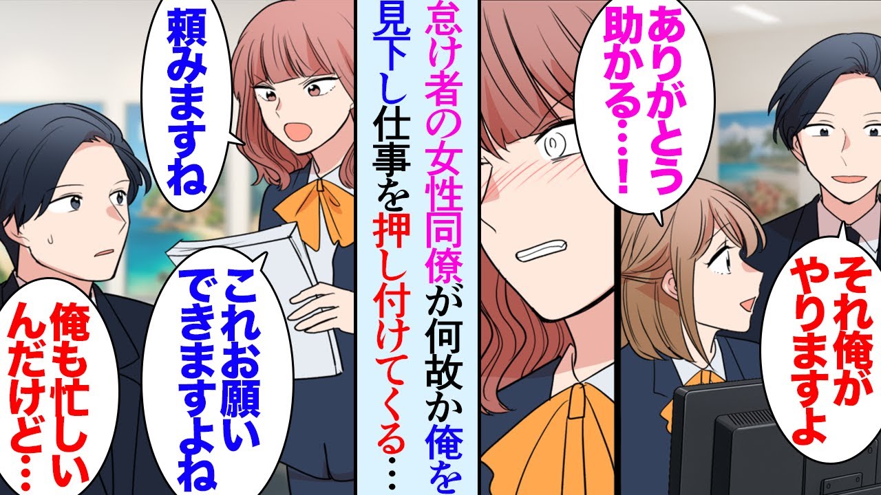 - タイトル: 【漫画】職場に不真面目な女性が居て俺は苦手だ「今日飲みに行きませんか?」やたらと俺を誘ってくるので断っていた→ある日を境に俺を見下したように仕事を押し付けてきて「これお願いしますね〜」【マンガ動画】
