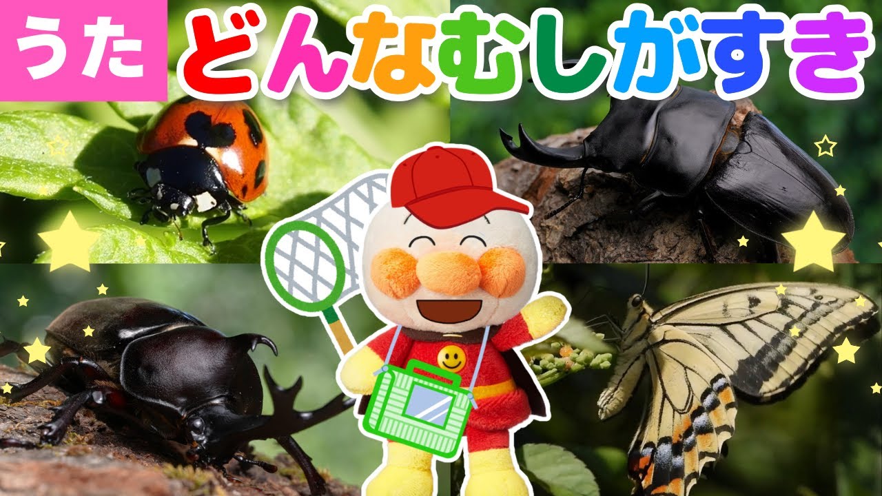 - タイトル: 【うた】㊗️10万回再生 どんな虫がすき♪(替え歌)アンパンマン達と一緒に虫を探してみよう!