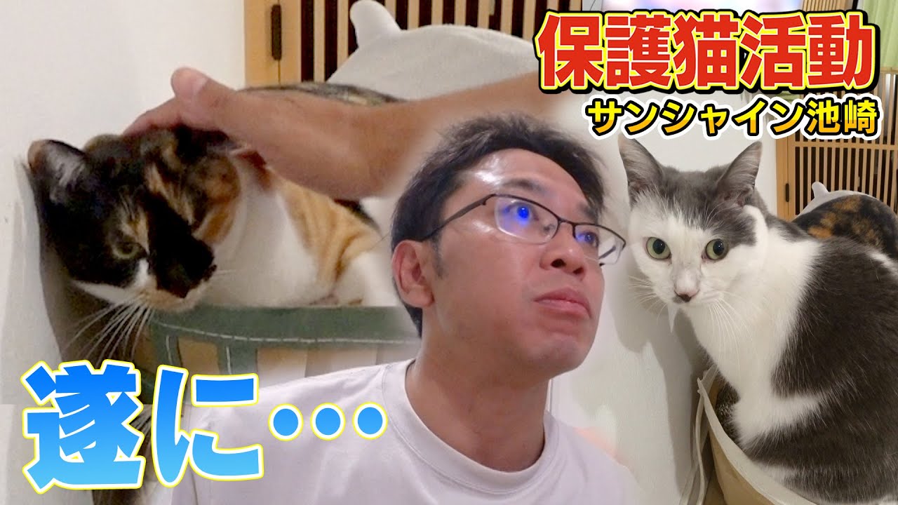 - タイトル: 【保護猫活動】遂にサンシャイン池崎さんが新入りブルボンの念願の頭なでを!