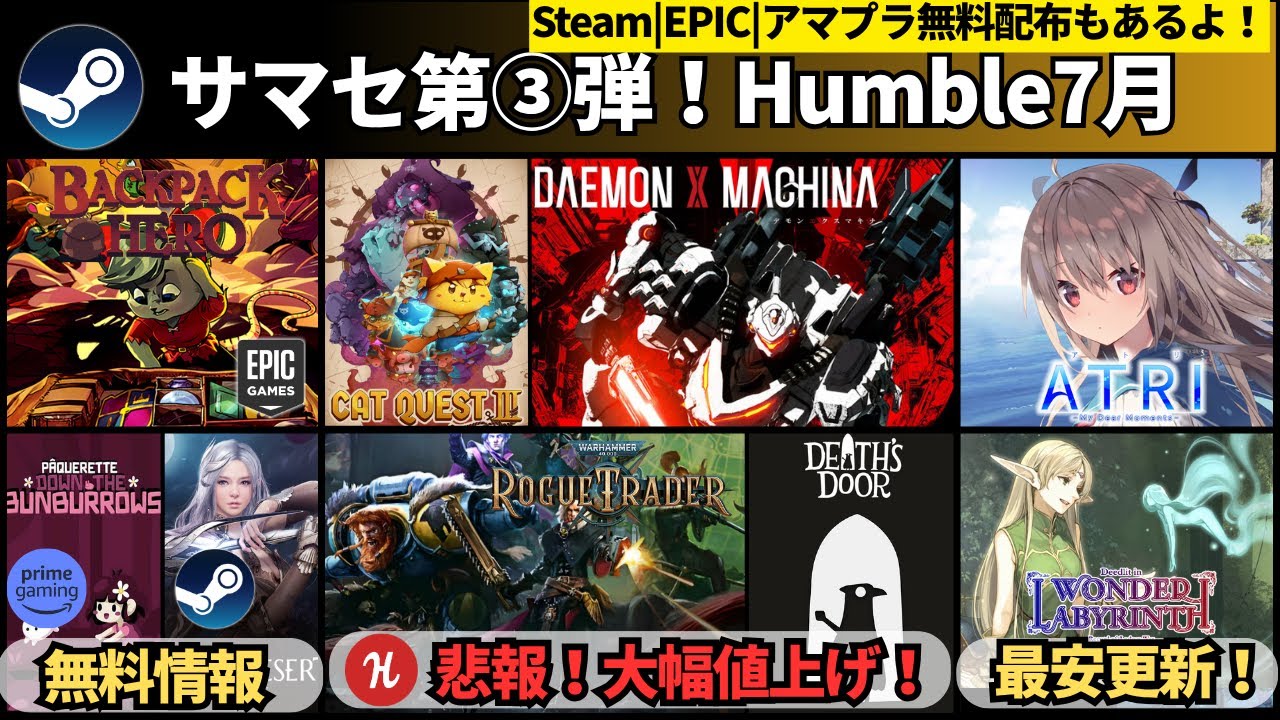 - タイトル: 【PCゲーム週イチまとめ(7/5更新)】無料配布まとめ/ 【Steamサマーセール特集③】ストア横断チェック済み!/『HumbleChoice7月号』8steamキーまとめ 悲報!今月から値上げ