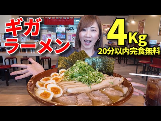 - タイトル: 【大食い】ギガラーメン4キロ超!20分以内完食無料チャレンジ!【三宅智子】
