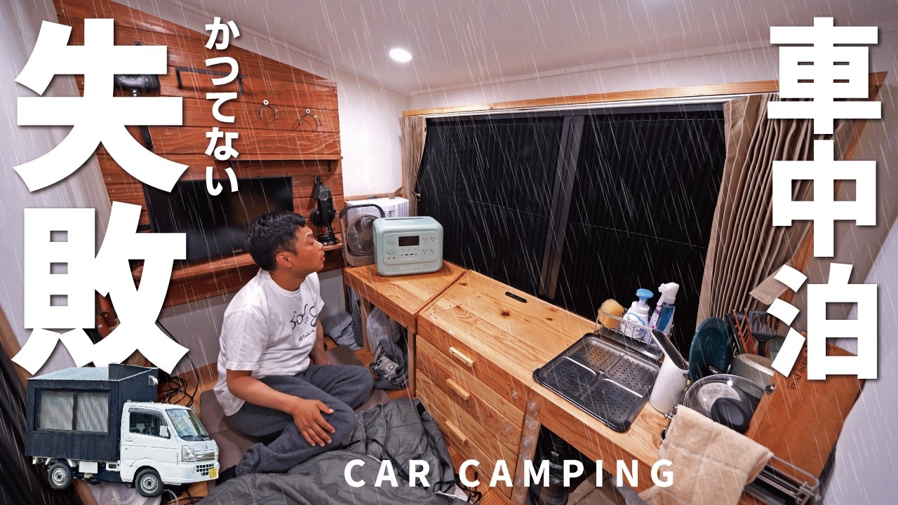 - タイトル: 【小雨の車中泊】かつてない大失敗…‼︎最新ポタ電を使ってオール電化車中泊!