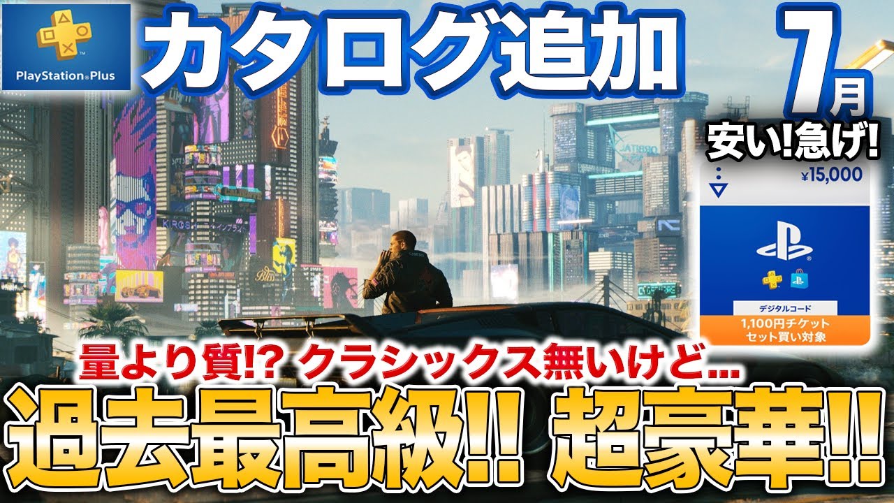 PSストアチケットのお得なキャンペーンと、7月のPlayStation Plusゲームカタログに追加された魅力的なゲームたち。この機会に、ぜひ気になるゲームをプレイして、充実したゲームライフを送ってください。どのゲームから遊ぶか迷ったら、まずは『サイバーパンク2077』から始めてみるのがおすすめです。コメント欄で、おすすめのゲームやプレイの感想を教えてください!