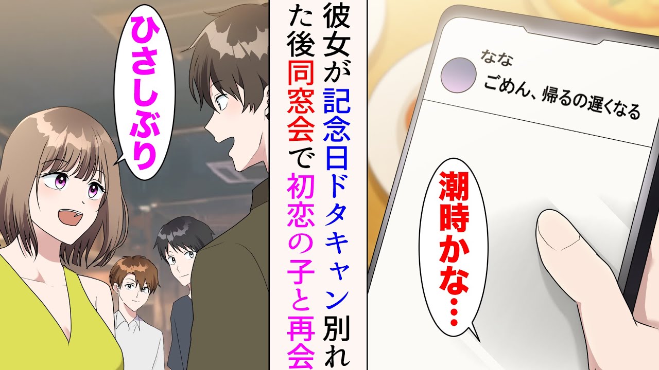 - タイトル: 【漫画】付き合って1年目の記念日を彼女が忘れドタキャン「ごめん、帰るの遅くなる」別れを決意→同窓会で初恋の女の子と再会。美人「ひさしぶり」交流が始まり…【マンガ動画】