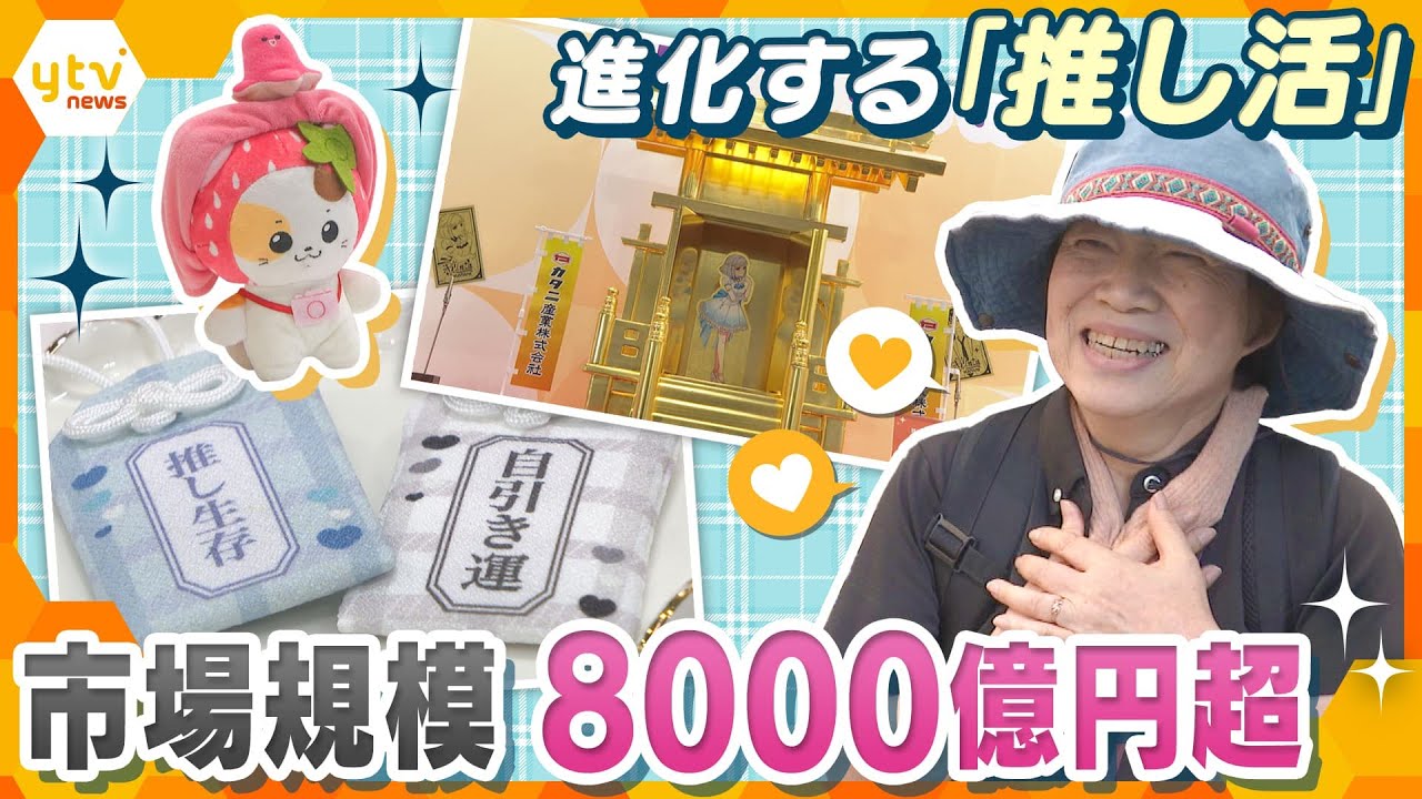 - タイトル: 若者だけじゃないシニアも「推し活」…拡大を続ける「推し活」市場は8000億円超…アニメに、スポーツ選手、「推し」を崇める金箔の神棚まで登場!【かんさい情報ネット ten.特集】