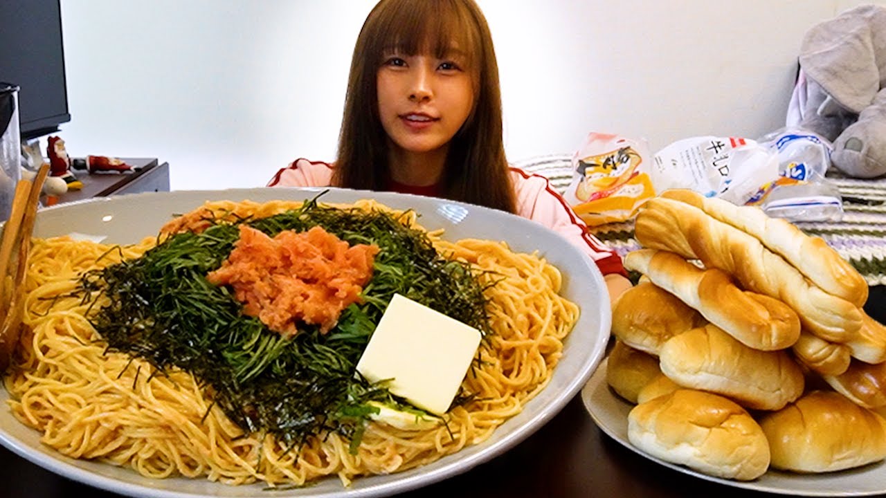 - タイトル: 【大食い】大盛りたらこパスタとパンのお昼ご飯