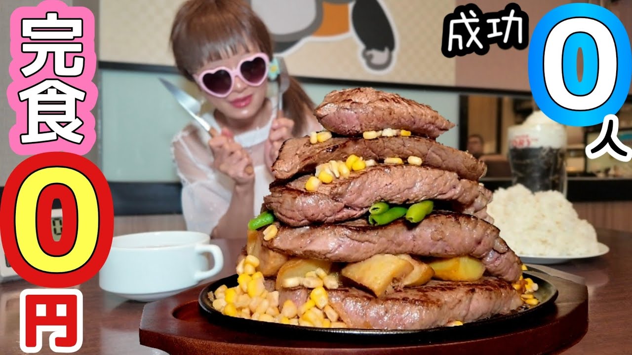 - タイトル: 【大食い】成功者0人‼️ステーキ山に挑んだ私がポンコツすぎた日。【完食0円】