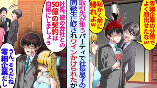 マンガ【漫画】取引先主催パーティーで俺貶す社長息子の同級生にワインかけられた俺。美人秘書「全社で契約停止しましょう」俺「50億の契約も白紙だね」