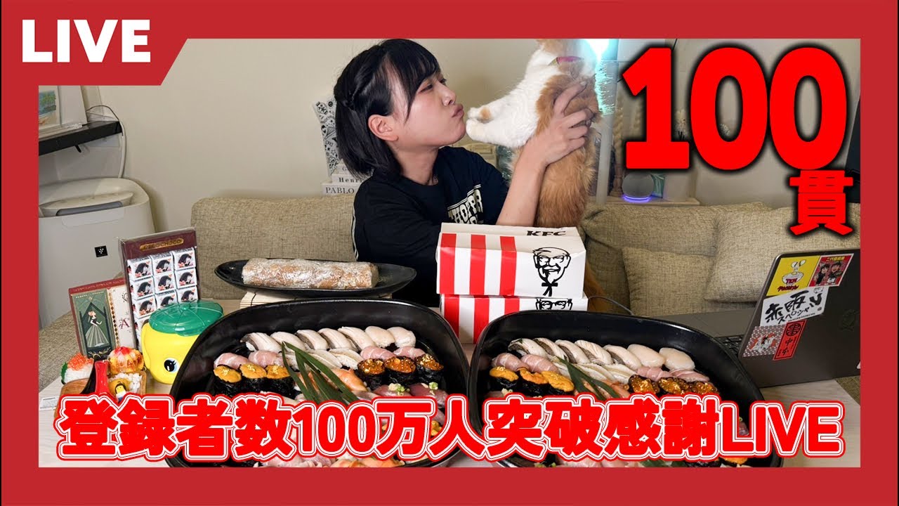 - タイトル: 【大食い】100万人ありがとう!なのでお寿司100貫食べます【海老原まよい】
