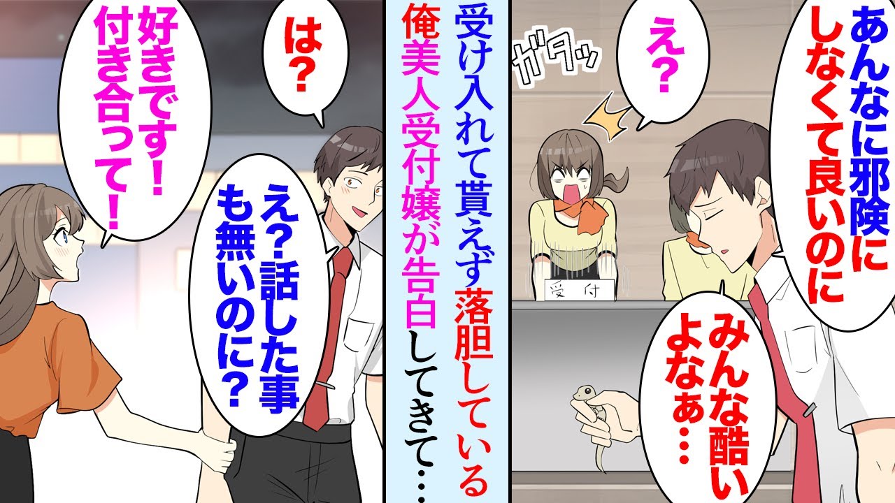 - タイトル: 【漫画】会社で人気のある美人受付嬢が、ある日突然俺に告白してきた「趣味があうと思うんです…!」「え?」→俺がみんなの嫌がる爬虫類を会社の外に逃がしていたのを見ていたらしいのだが【マンガ動画】