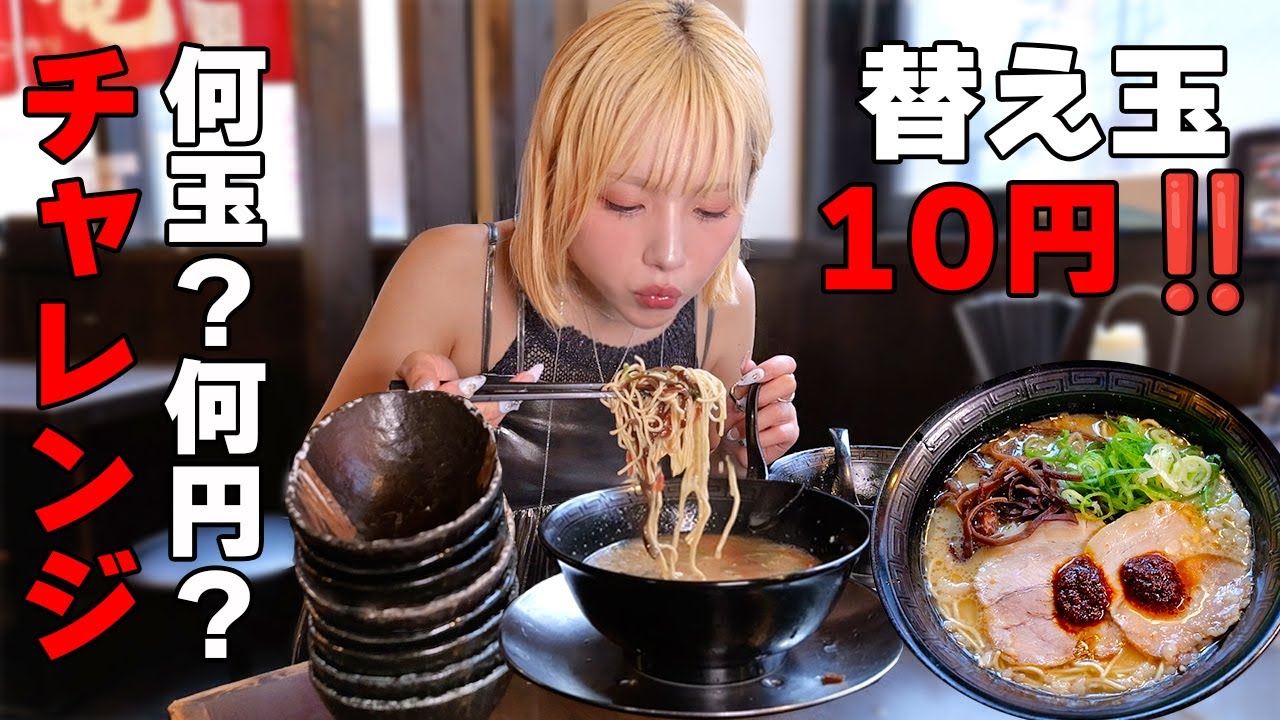 - タイトル: 【大食い】替え玉10円!とんこつラーメン30分で何玉食べられる?【ますぶちさちよ】