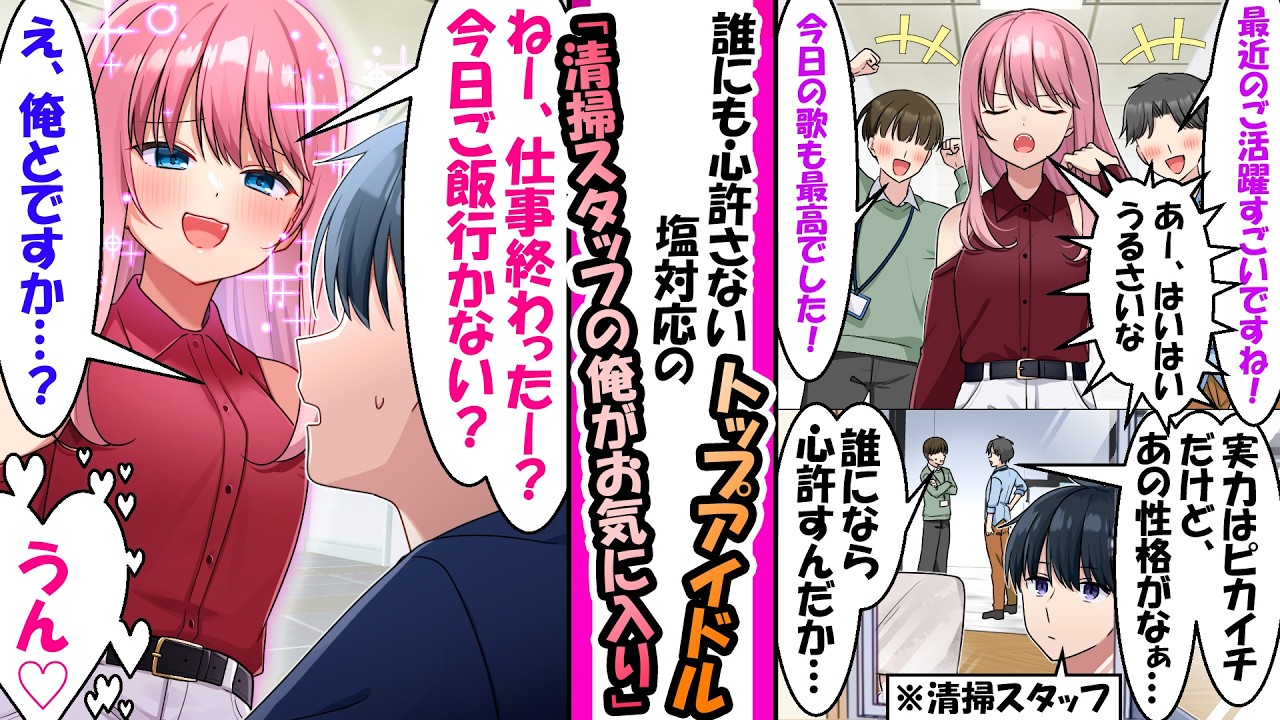 - タイトル: 誰にも心を許さないトップアイドルに清掃員の俺だけが素っ気ない態度を取り続けたら俺に靡いた【漫画】