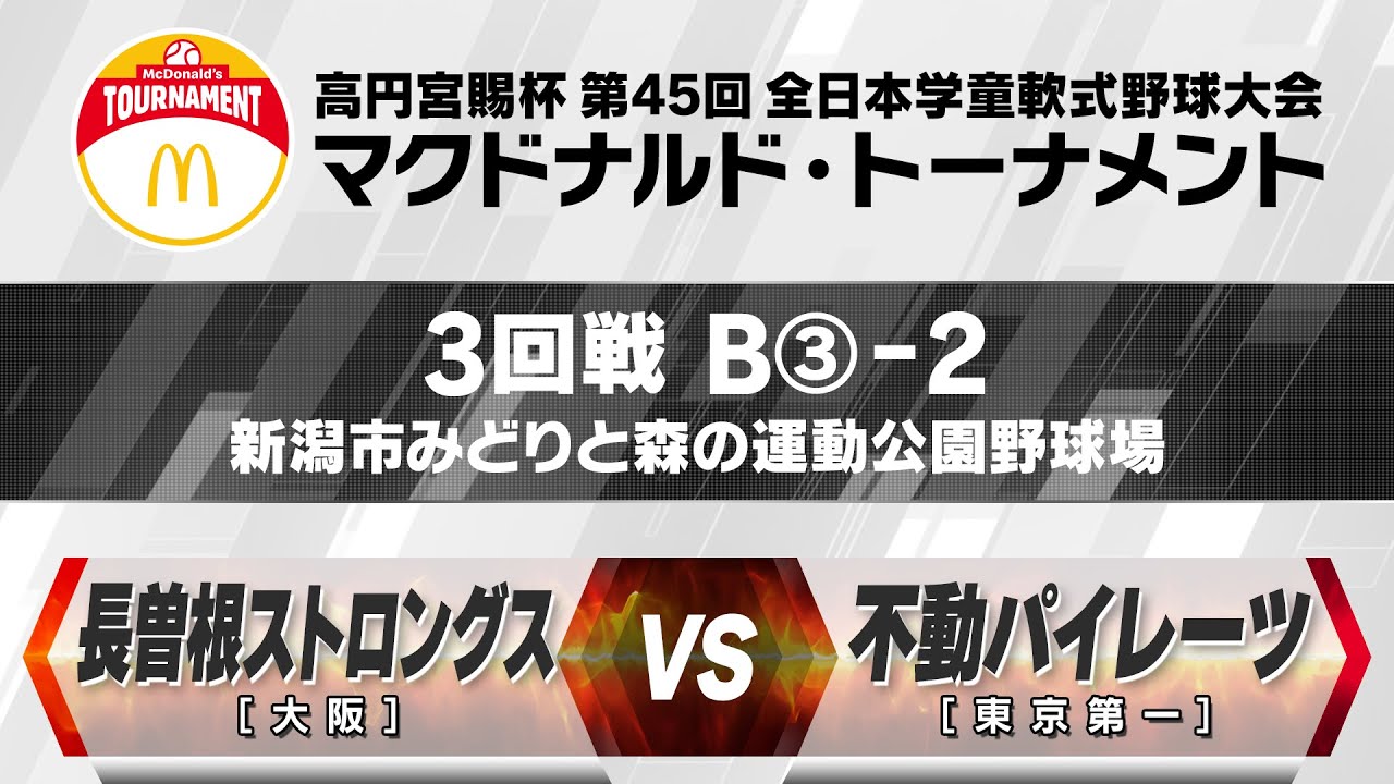 - タイトル: 【3回戦:新潟市みどりと森の運動公園野球場 2試合目】B③-2【大阪】長曽根ストロングス vs 【東京第一】不動パイレーツ