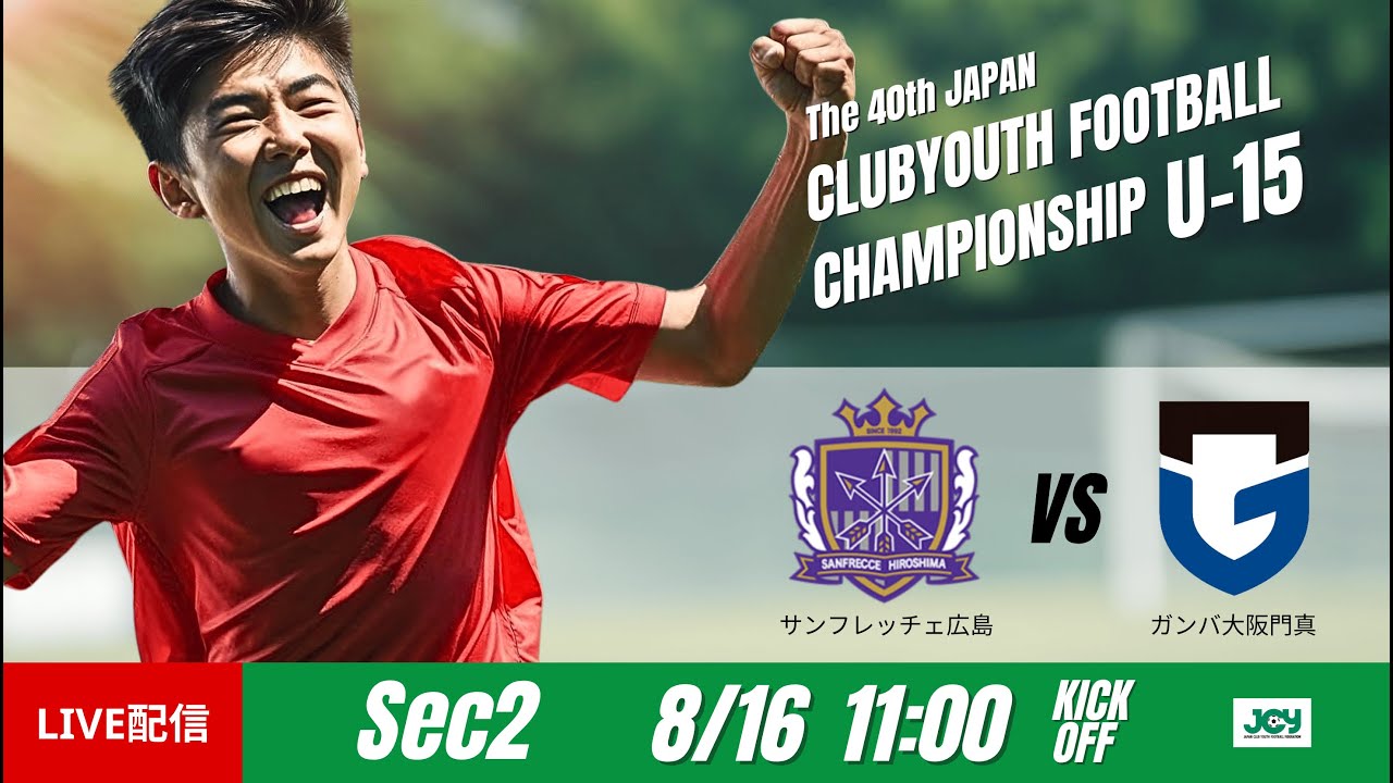 - タイトル: 【日本クラブユースU-15 2025】グループステージ G 第2節 サンフレッチェ広島 vs ガンバ大阪門真 第40回 日本クラブユースサッカー選手権(U-15)大会