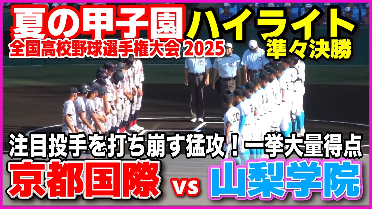 - タイトル: 【高校野球 甲子園】 京都国際 vs 山梨学院 注目投手を打ち崩す猛攻!一挙大量得点 【全国高等学校野球選手権大会 準々決勝 全打席ハイライト】 교토국제 2025甲子園 8.19