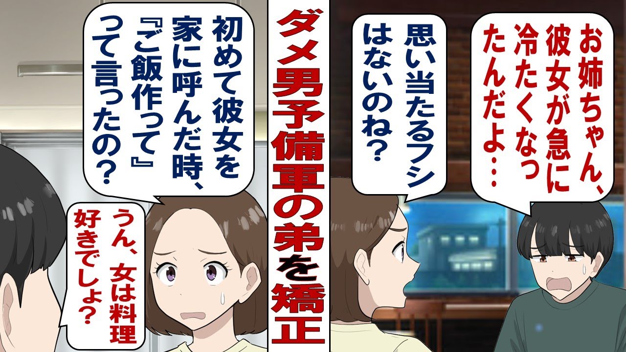 - タイトル: 【漫画】ダメ男予備軍の弟「助けて姉ちゃん!彼女にフラれそう!」私「なんかやったの?」弟「なにもしてないよ!うちに呼んだ時にご飯作ってって言ったけど」私「それだ!」