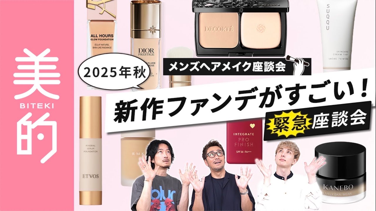 「まるで美容液!」「ツヤとマットの黄金比!」「カバー力と自然さの両立!」2025年秋、ファンデーションの世界が大きく進化を遂げました。人気男性ヘアメイクアップアーティスト、KUBOKIさん、向井志臣さん、石川ユウキさんが、新作ファンデーションの驚くべき進化と、その魅力を徹底的に語り尽くします。プロの視点から見た、ファンデーションの最新トレンドをチェックしましょう!