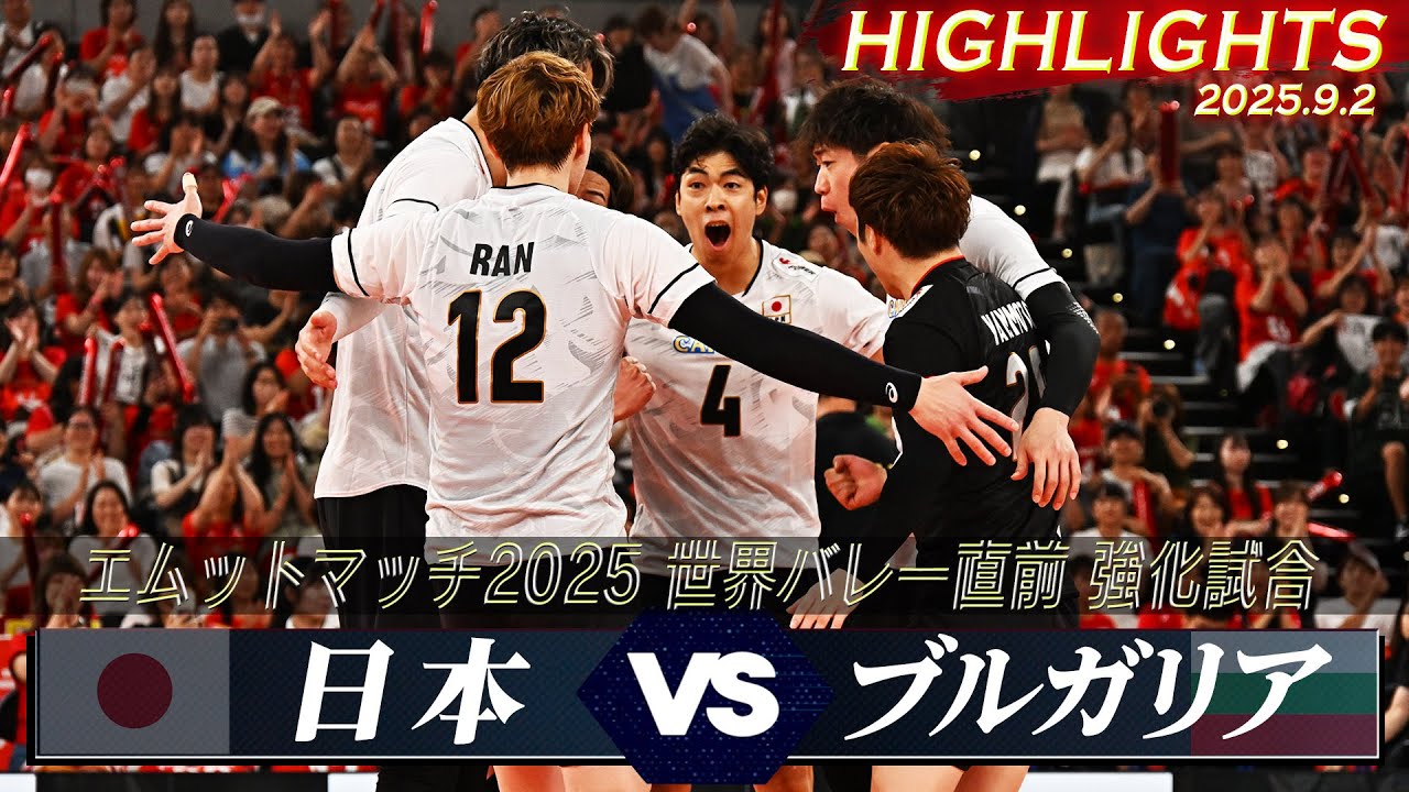 - タイトル: 【バレーボール男子日本代表】ハイライト「 9/2 日本 vs ブルガリア」【エムットマッチ2025 世界バレー直前 強化試合】