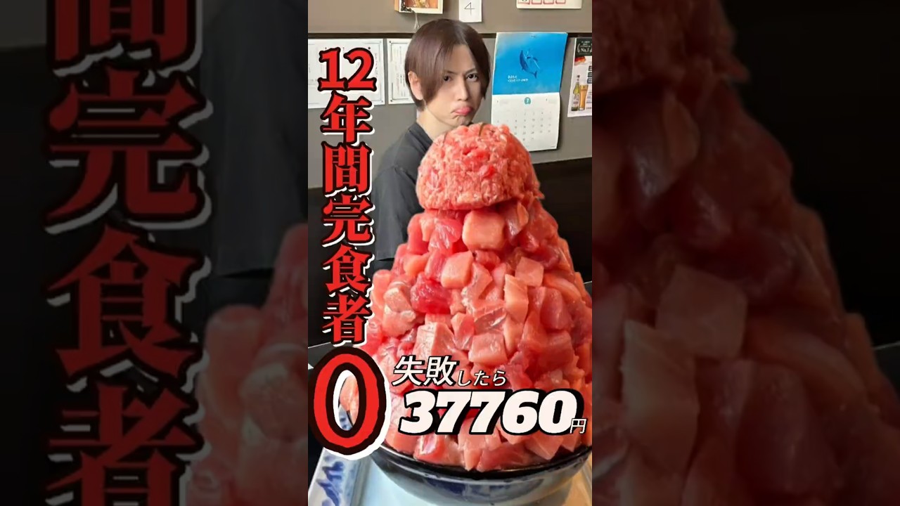 - タイトル: 【大食い】数々の猛者が挑戦するも12年間完食者0の超巨大デカ盛りまぐろ丼を筋肉で捻じ伏せる!かも【Bigeater】