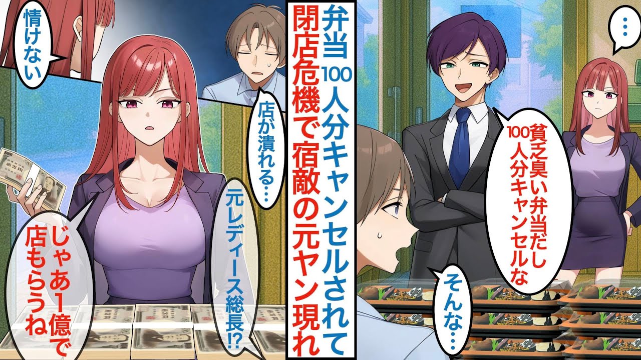 親の弁当屋を継いだ俺が100人分の弁当を全部キャンセルされた。閉店ピンチに元宿敵だった最恐の美人レディース総長が現れ「この店1億でもらうね」実は女社長で一緒に繫盛させるが【恋愛マンガ動画】