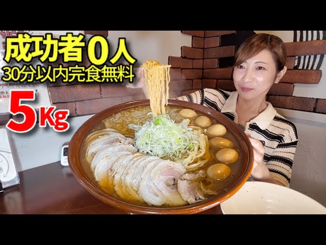 - タイトル: 【大食い】成功者0人!醤油ラーメン5キロ30分以内完食無料!【三宅智子】
