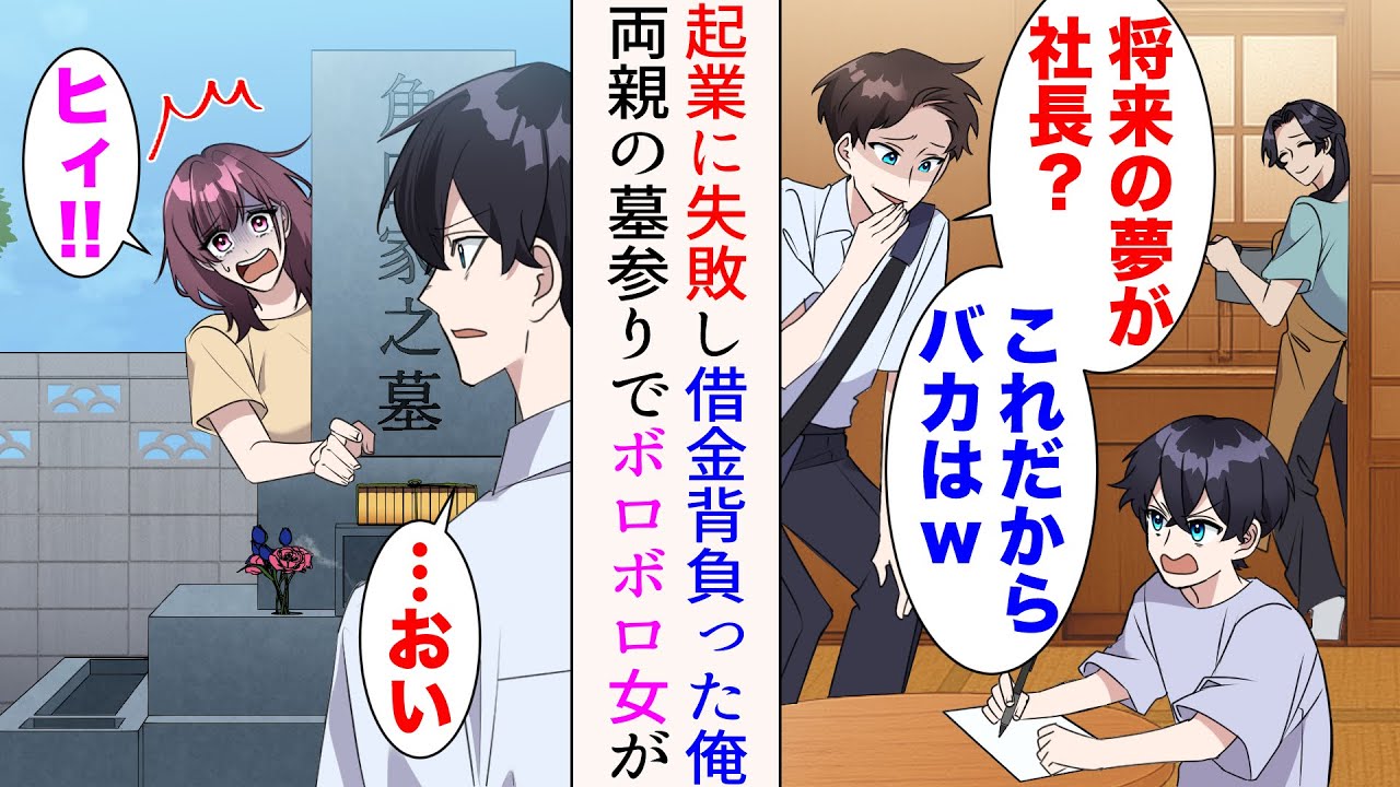 # 【漫画】バカにされた社長の夢、墓参りで出会った女性が救世主に!?起業失敗からの大逆転劇