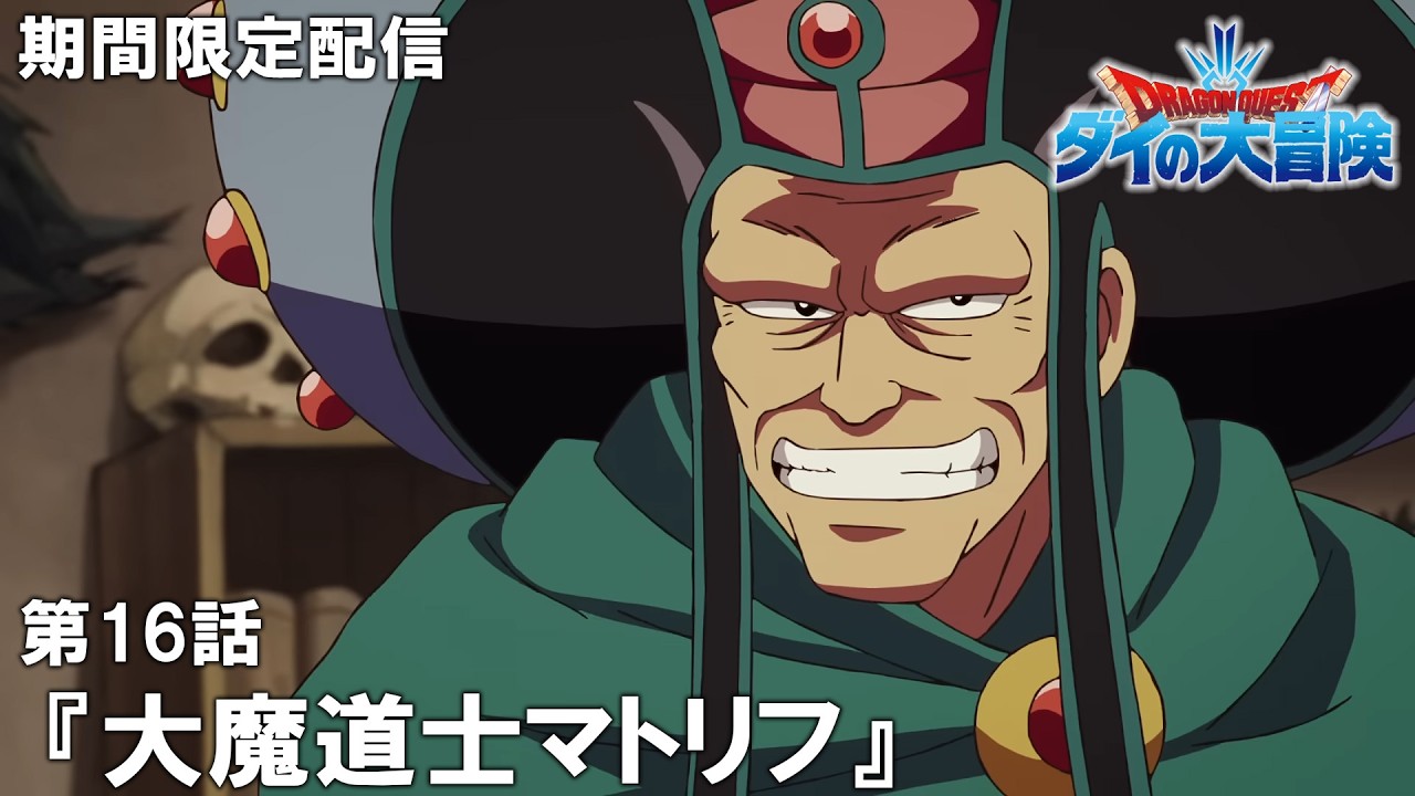 - タイトル: 【公式アニメ】『ドラゴンクエスト ダイの大冒険』第16話「大魔道士マトリフ」【9月26日(金)17:00まで期間限定配信】