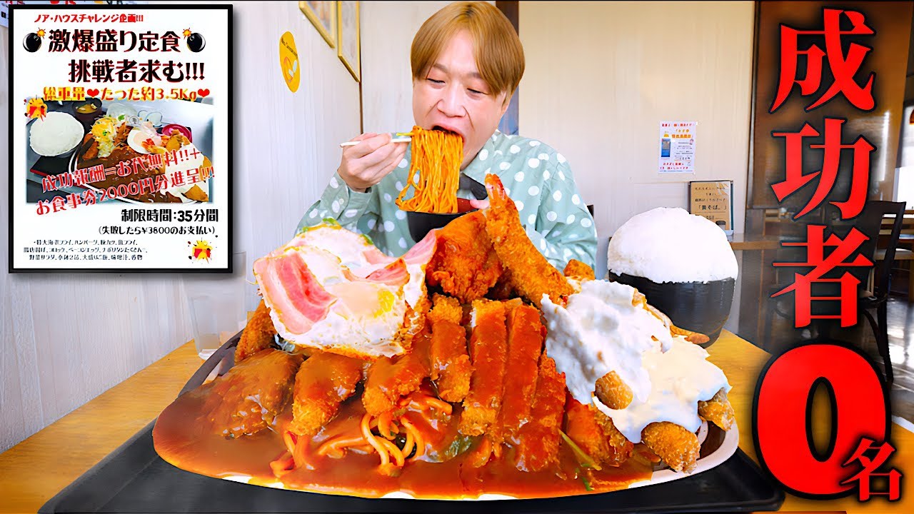 - タイトル: 【大食い】朝7時にデカ盛りチャレンジ⁉️喫茶店の爆盛りお子様ランチを制限時間30分で完食すれば成功のチャレンジに挑む‼️【大胃王】【喫茶ノア・ハウス】