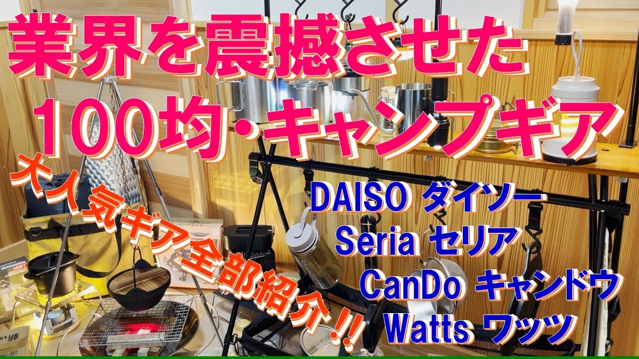 - タイトル: 業界を震撼させた100均キャンプギア全部紹介‼ 知らないと大損する 大人気のダイソー・セリア・キャンドウ・ワッツ商品一挙に紹介‼