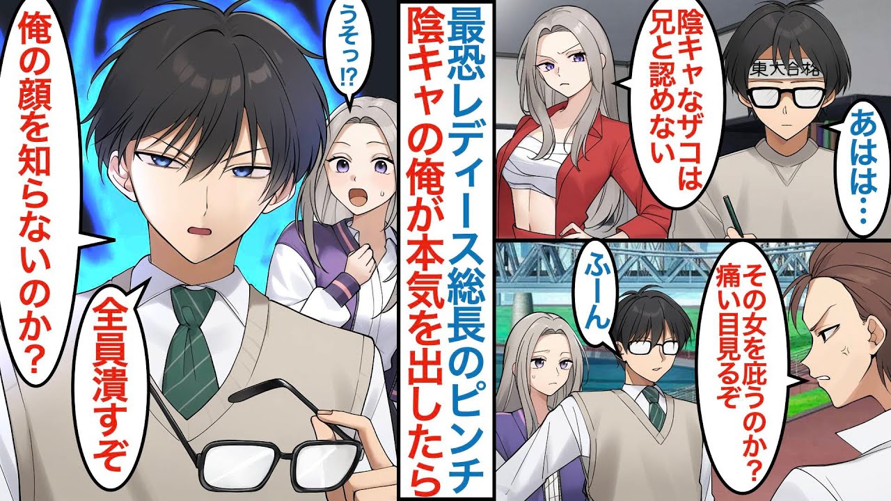 • タイトル: 【漫画】弱いフリした陰キャの俺に親の再婚で最恐の美人レディース総長の義妹ができ同棲することに。「兄とは認めない」東大志望の俺を嫌う彼女のピンチに本気を出して助けたら状況が一変して【恋愛マンガ動画】