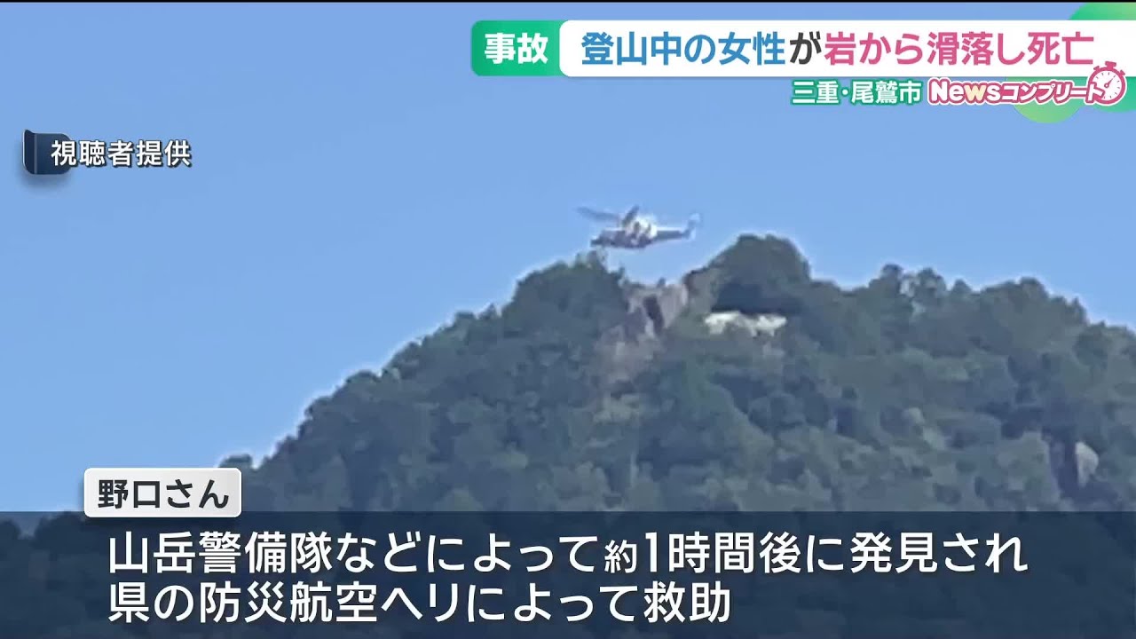 - タイトル: 登山中の73歳の女性が岩から滑落し死亡 三重県尾鷲市 (25/09/17 18:49)