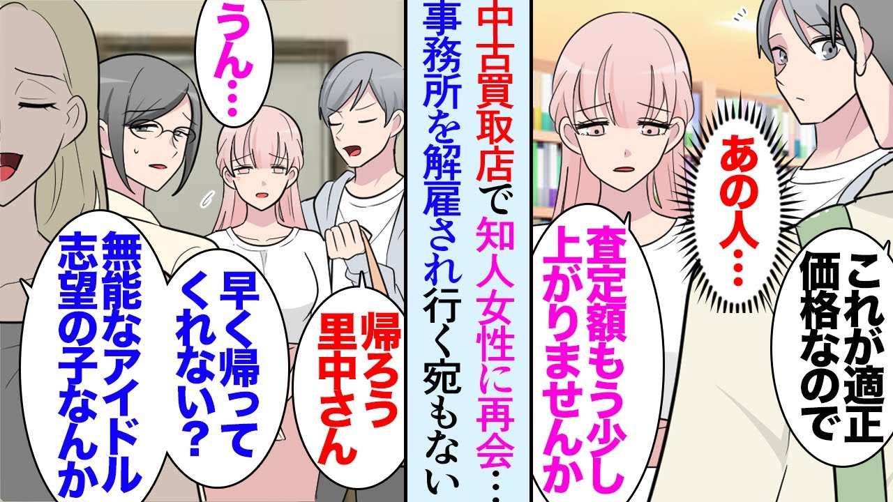 - タイトル: 【漫画】リサイクルショップの買取カウンターで価格交渉している女性を発見「あれ…?」大学時代お世話になったアパートの住人だった→「アイドルになれなかったw」仲間に見下され解雇されたそうで【マンガ動画】