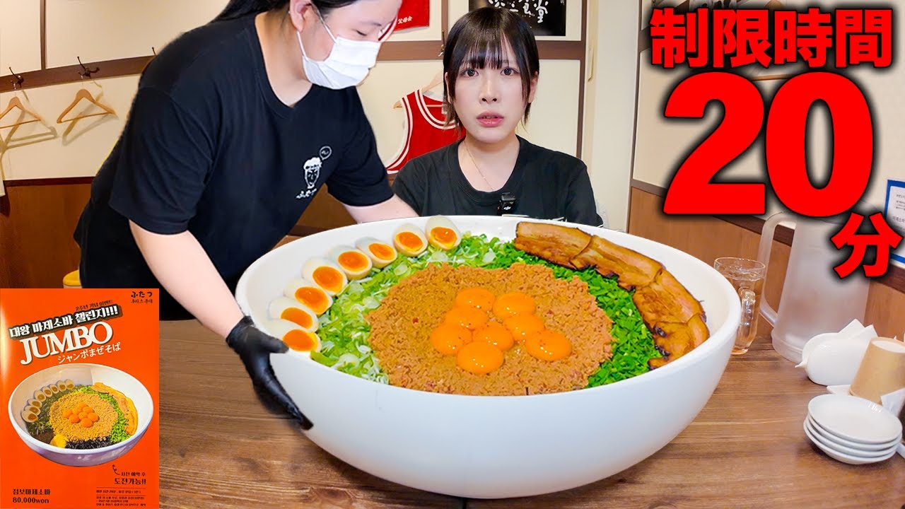 • タイトル: 【大食い】制限時間20分だと…完食したら賞金1万円の巨大まぜそばチャレンジメニューに挑んだ結果【海老原まよい】