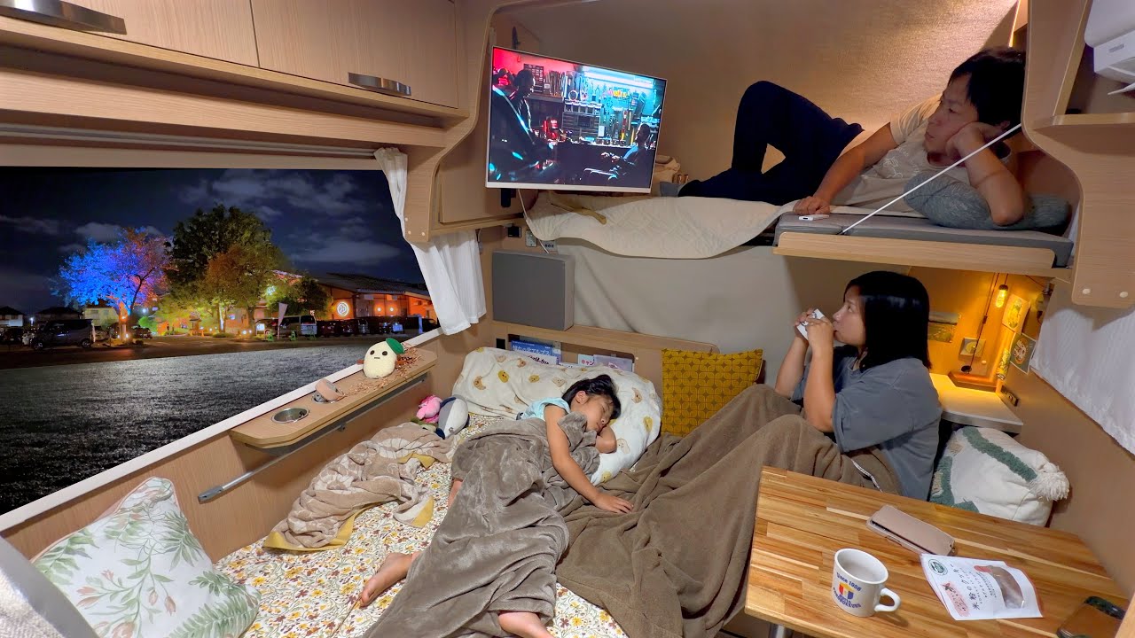 - タイトル: 居酒屋車中飯とミニシアターで”車中泊”を楽しむ家族のリアルな夜|免許不要99gドローンで撮る絶景|キャンピングカー車中泊