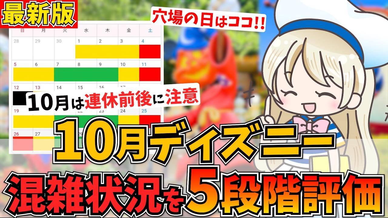 - タイトル: 10月ディズニーの混雑予想2025年版!5段階で混雑状況を徹底解説!穴場期間や混みやすいアトラクションまでシェア♩
